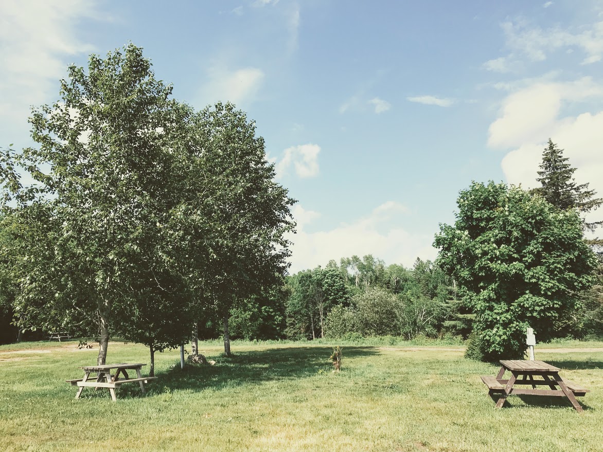 Site offers 30 amp power hook-up and water tap, picnic table + firepit.